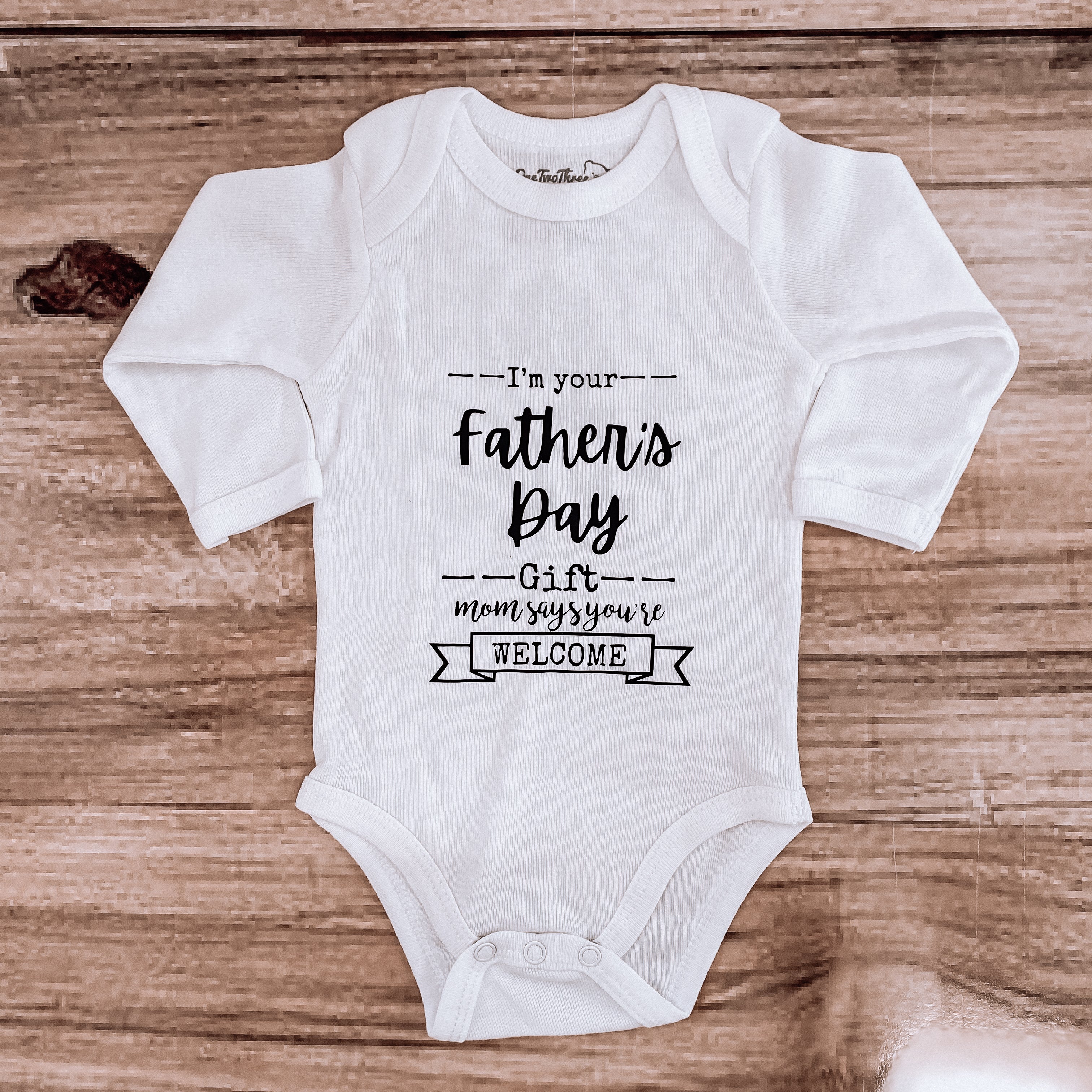 - Finish: HTV on Long Sleeve Onesie